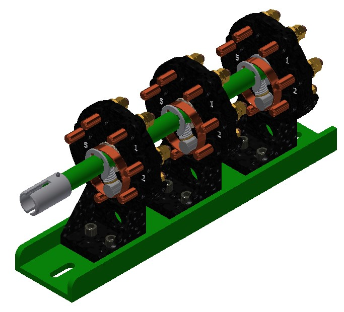 El mecanismo del contacto es del tipo rotatorio, el cual puede ser de cobre ó latón, según la capacidad de corriente del cambiador.